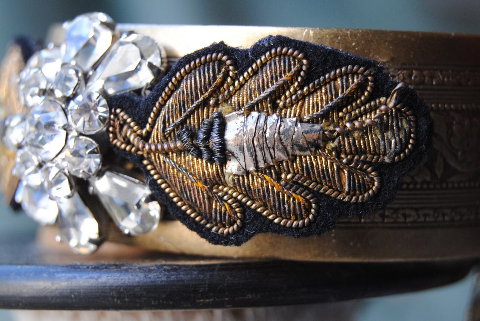 I hope she will be happy with these cool old patches turned into blinged out cuffs!
