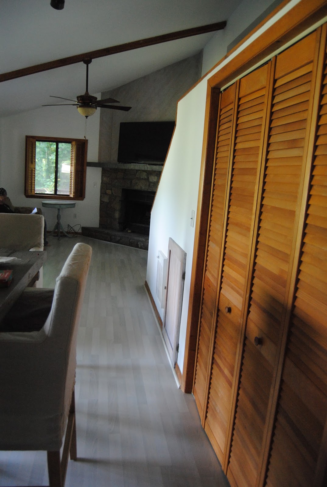 Hi everyone, I have just returned from my "happy place" and oh happy joy we managed to get so much finished on our new mountain 'chalet'. There is still so much left to do, but some major milestones were made on our huge cabin remodel. There is a complete overhaul of the interior going on here and lots of hard work but it will be so worth all of the effort when finished. Here is a little peek of some 'before' and 'after' pics. I am not showing every 'before' picture, because in all honesty, some of the previous owner's interiors were just plain hideous! LOL